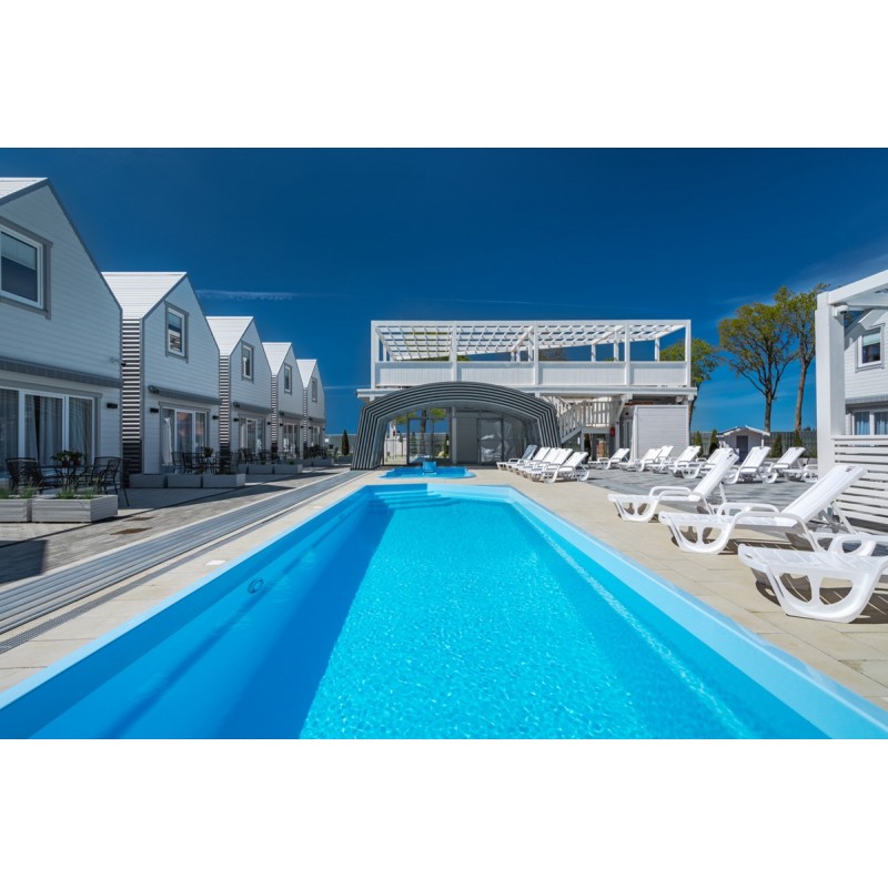 Przestronne nowoczesne domki usytuowane blisko morza, dostępny plac zabaw dla dzieci, basen na wyciągnięcie ręki.