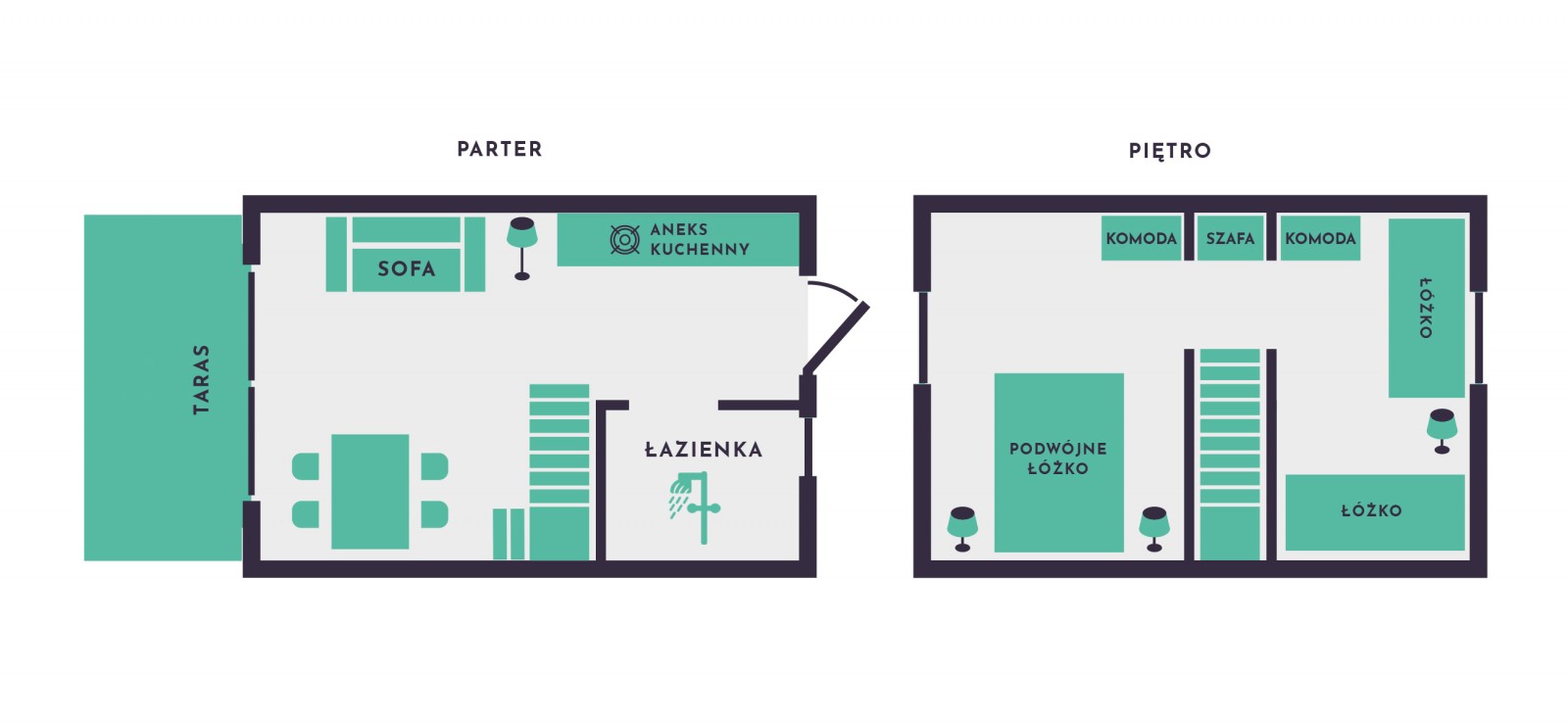 We like cosy interiors. Fair, spacious, carefully designed and furnished with attention to detail. We like practical interiors that have a soul. This is how we furnished our “Na Klifie” houses – in a modern and comfortable way. We provided air-conditioning, kitchenette and extra accessories that may come in handy on holiday. Unique decorations, including excellent handicraft made by Polish artists, are the icing on the cake.
